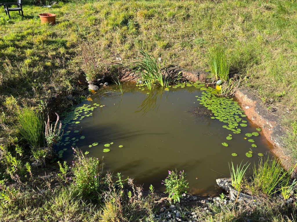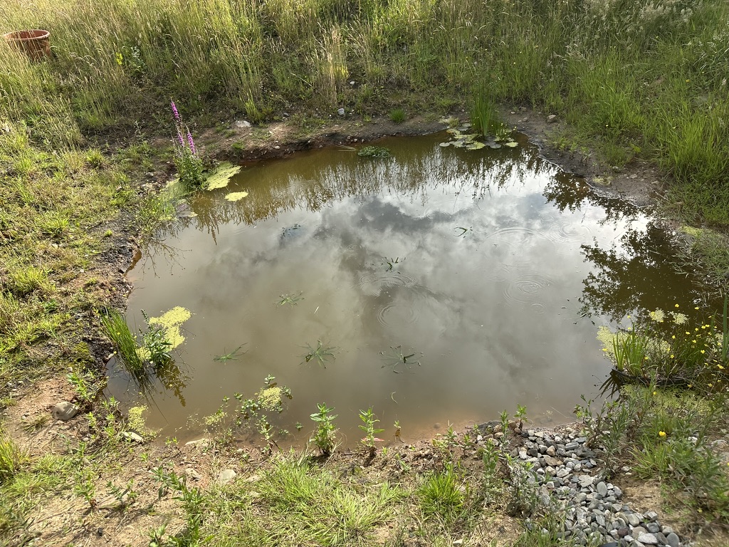 From last year’s downpours to this summer’s scorching heat, the pond has faced both extremes. The clay base has held up brilliantly, keeping enough water even through dry spells, while the French drains have significantly improved the drainage on the rest of the site.