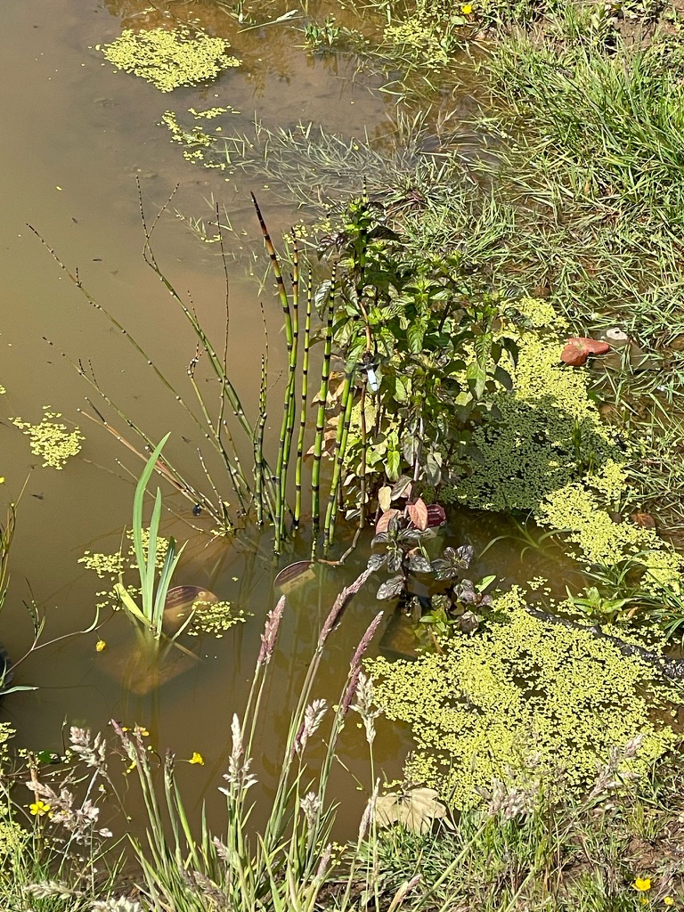 In just over a year, this unlined, clay-based pond has gone from a muddy hole in the ground to a thriving habitat. It’s living proof that with a bit of vision, teamwork, and persistence, even a drainage problem can grow into a haven for wildlife.